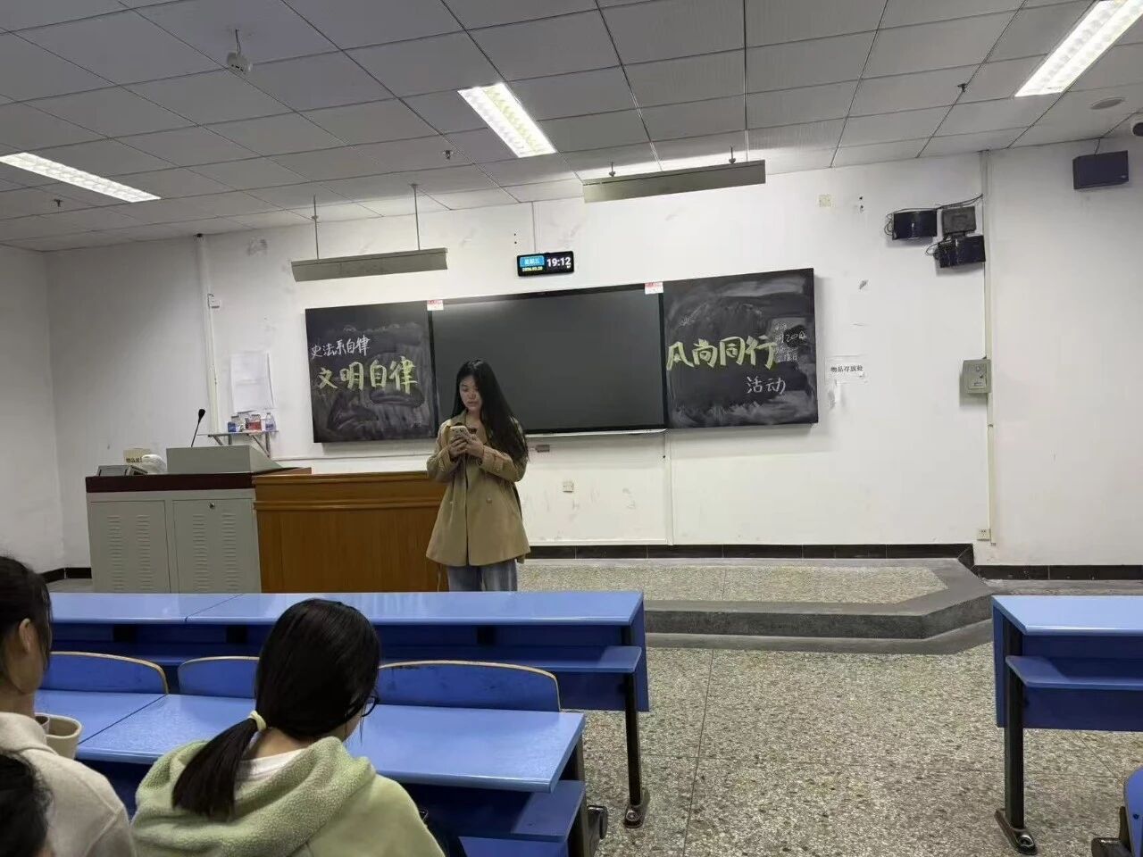 为弘扬校园文明风尚,强化学生文明自律意识,营造规范有序、向上向善的校园环境,3月20日19:00,历史文化与法学系自律委员会于北院408教室顺利举办“文明自律·风尚同行”主题活动。本次活动由系自律委员会文宣部与督察部联合承办,同学们积极参与,在互动与交流中践行文明理念,共筑文明校园。