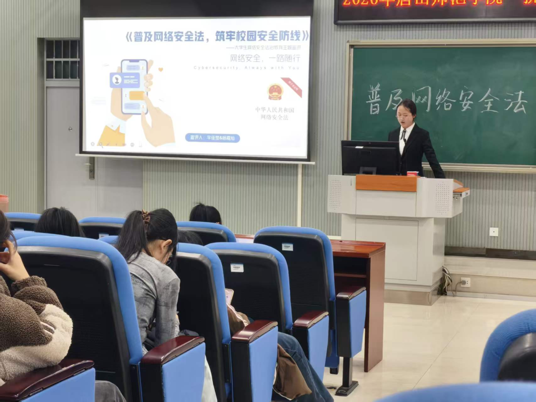 本次宣讲活动以“精准、通俗、实用”为核心原则,打破了网络安全法律知识的理论壁垒,让《网络安全法》从条文文本走进大学生的日常网络生活。宣讲团成员紧扣校园网络场景,系统梳理了《网络安全法》核心内容,围绕网络实名制落实、个人信息全流程保护、网络诈骗精准防范三大重点板块展开解读,清晰界定了大学生在网络空间中的权利与义务,明确了合法上网的行为边界与违规操作的法律责任,帮助同学们认清网络行为底线,守住安全与法律红线。