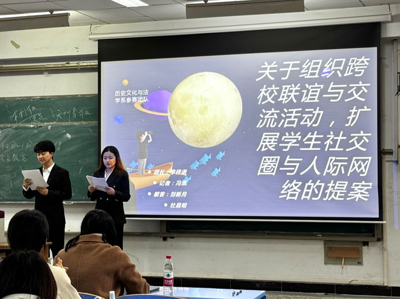 此次模拟提案大赛选拔赛,不仅为系内学子搭建了建言献策、展示风采的实践平台,更让学子在提案撰写、调研论证、现场答辩的全过程中,提升了分析问题、解决问题的综合能力,进一步激发了同学们关注校园发展、主动参与校园建设的主人翁意识。未来,历史文化与法学系将继续以此类实践活动为载体,强化实践育人实效,引导更多学子将个人成长与校园发展紧密结合,用青春智慧为学校建设发展贡献力量。